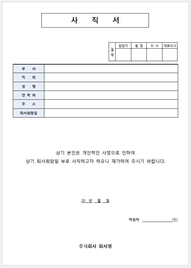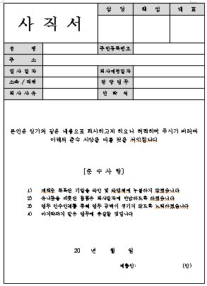 - 상세 사직서 양식 (또는 회사 지정 양식):